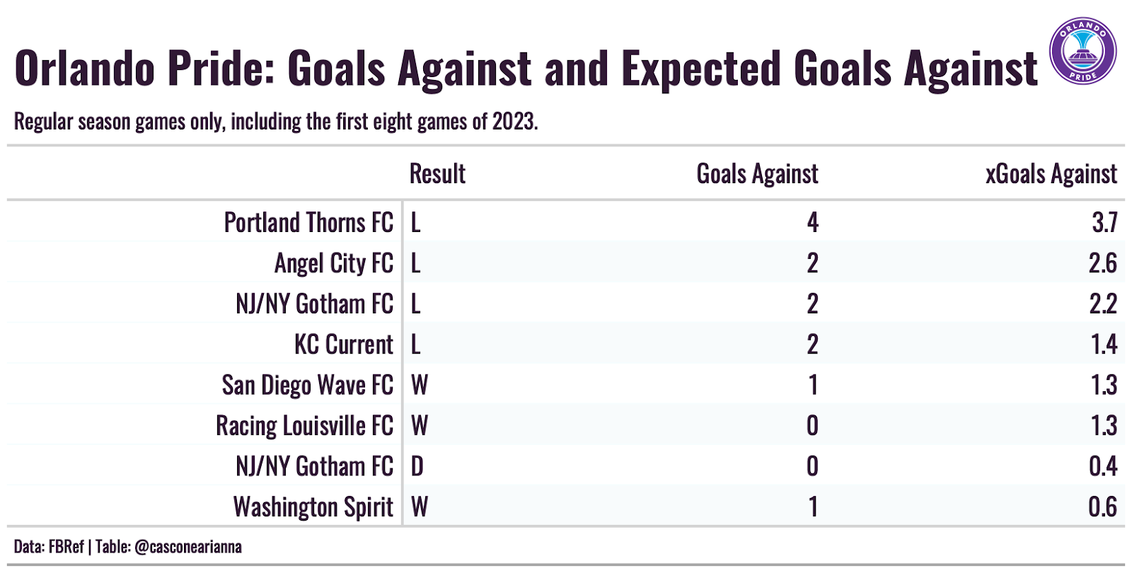 It’s taken some time, but Orlando have finally found their footing. Despite starting the season bleeding goals, the Pride have tightened things up defensively. They’ve steadily improved the number of goals they’re conceding per game, and have gotten their xGA under control, too.