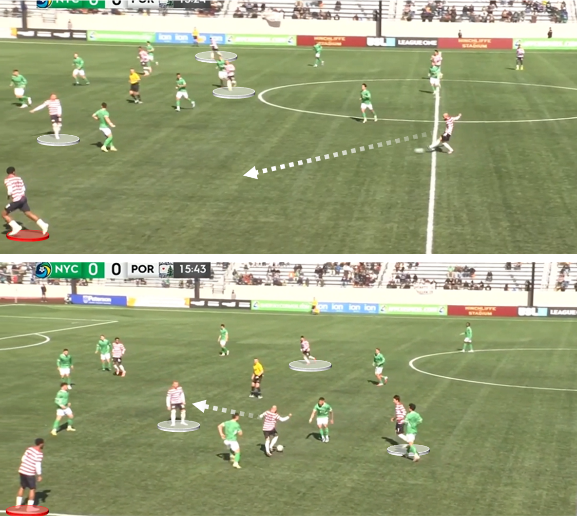 Portland traveled to Hinchcliffe Stadium and downed the New York Cosmos by a 3-1 margin, deploying a lineup with eight returning starters. Still, it was the new faces – namely Zion Scarlett at left back and Matteo Kidd in the 4-2-3-1’s pivot – that proved especially influential. Scarlett, 21, had a previous stint in League One as a member of the Greenville Triumph, where he mainly operated as a pace-first forward. Kidd, 28, spent his last two seasons with St. Louis City 2 in MLS Next Pro; in 2024, he was managed by Bobby Murphy before his move to Maine.