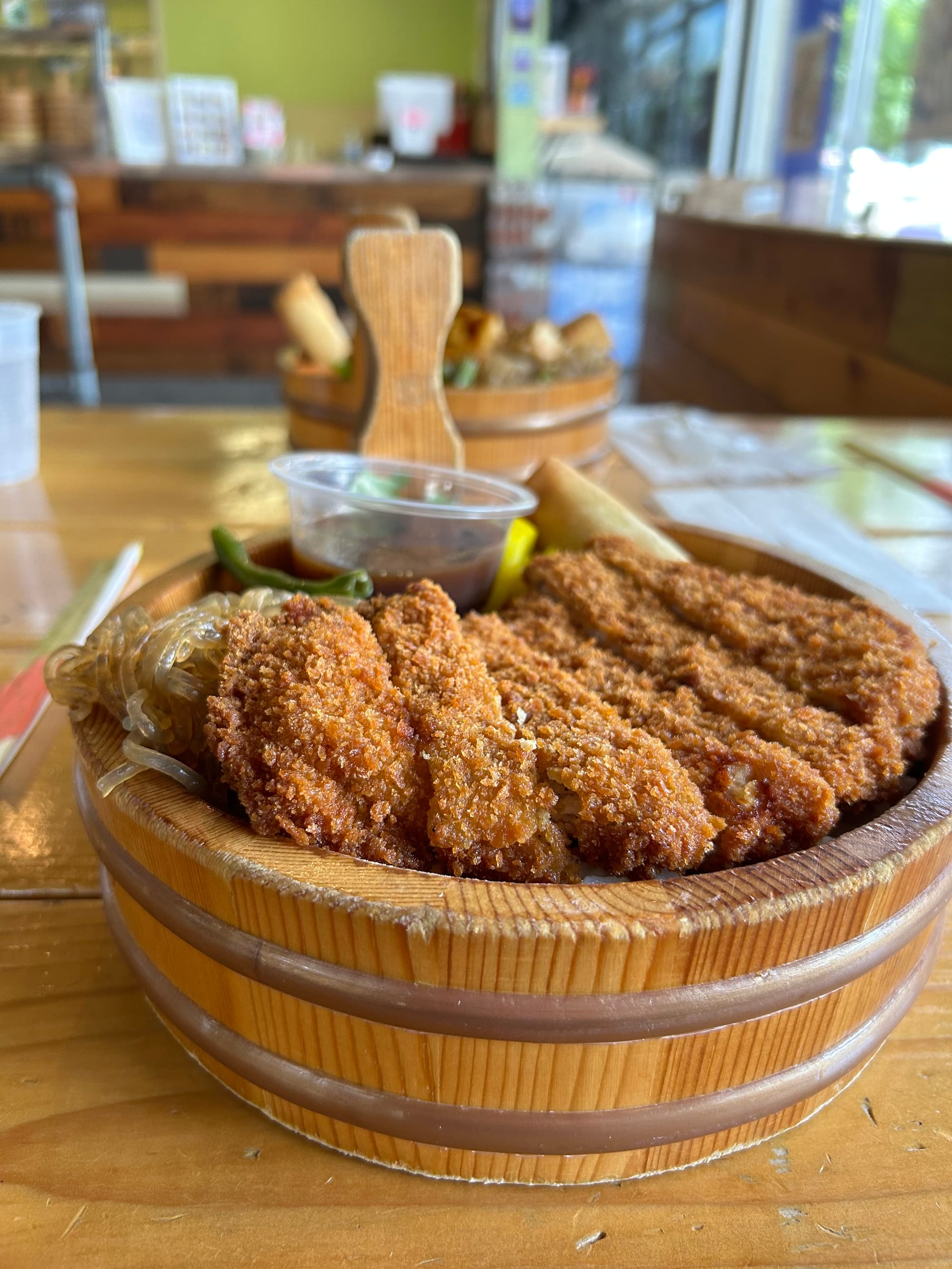 Namoo Korean Bowl in Arlington did not disappoint. A fried, garlic-seasoned pork cutlet with white rice, a mix of produce, and a vegetable egg roll? Mhmm. Yep. That's the good stuff. 9/10.
